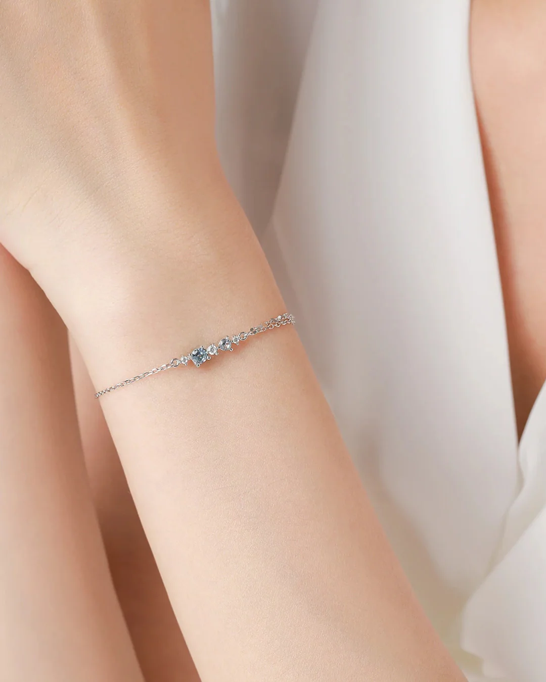 A Pulseira Elegance é uma joia deslumbrante que combina a delicadeza da prata 925 esterlina com o brilho cativante das zircônias azuis e brancas. Seu design moderno de corrente e elos, intercalado com as pedras redondas de zircônia, cria um efeito visual sofisticado e contemporâneo. Leve e elegante, esta peça é perfeita para adicionar um toque de cor e glamour ao seu visual, ideal para casamentos, celebrações ou para elevar o seu estilo no dia a dia. Uma escolha refinada para a mulher que aprecia joias finas e exclusivas da.